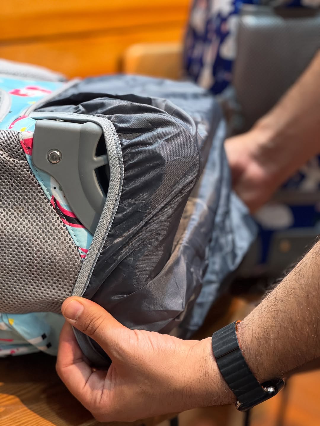 ارتفاع کوله ۵۰ سانتی متر قابلیت باز شدن اهرم چرخ تا ۶۰ سانتی متر دارای کاور مجزا جهت پوشاندن چرخ های تروالی رنگبندی طبق تصویر جنس برزنت ضد آب ۱۰۰٪ ضمانتی